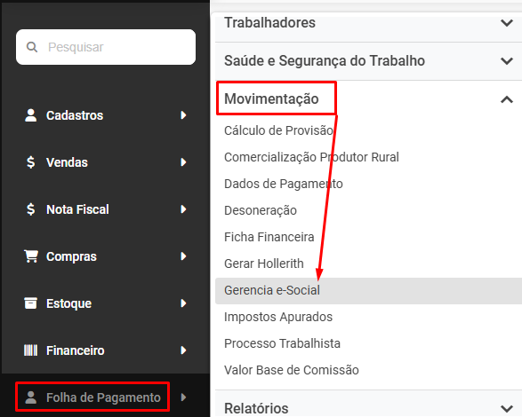 Em seguida envie novamente a carga S1200 que foi rejeitada anteriormente acessando o menu Folha de Pagamento>Movimentação>Gerencia eSocial