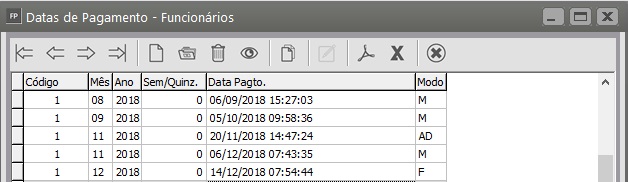 Confira se na Ficha financeira do funcionário tem Modos gerados que não constam no menu Movimentação/Rotinas Mensais/Datas de Pagamento/Funcionário/Manutenção