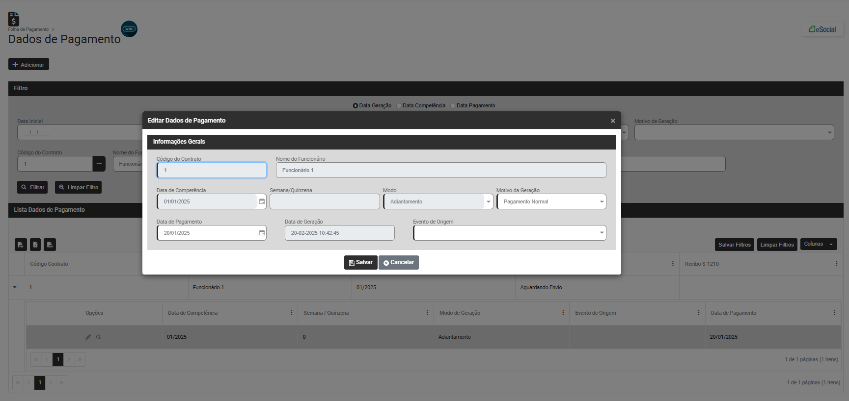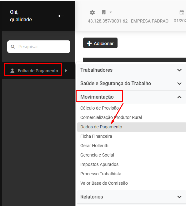 Solução: Acesse Folha de Pagamento>Movimentação>Dados de Pagamento