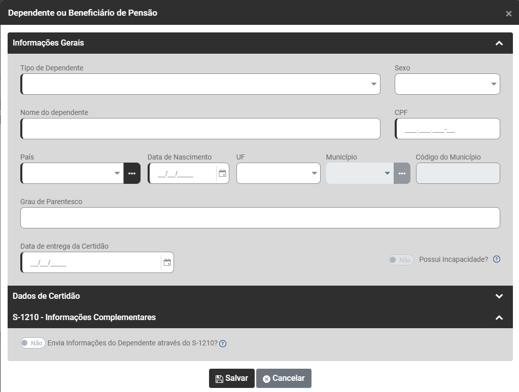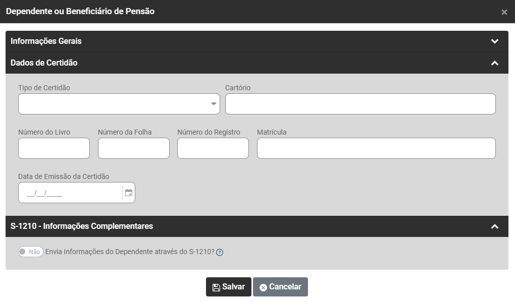 Edite o cadastro do Dependente e faça a conferência de todas as informações cadastradas