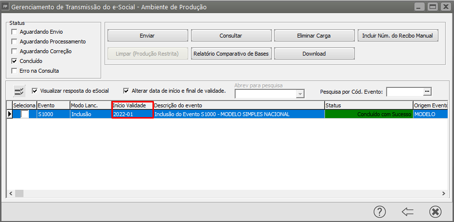 Filtre por Eventos Iniciais e verifique seVerifique a data de inicio de validadeEnvio dos EventosEvento