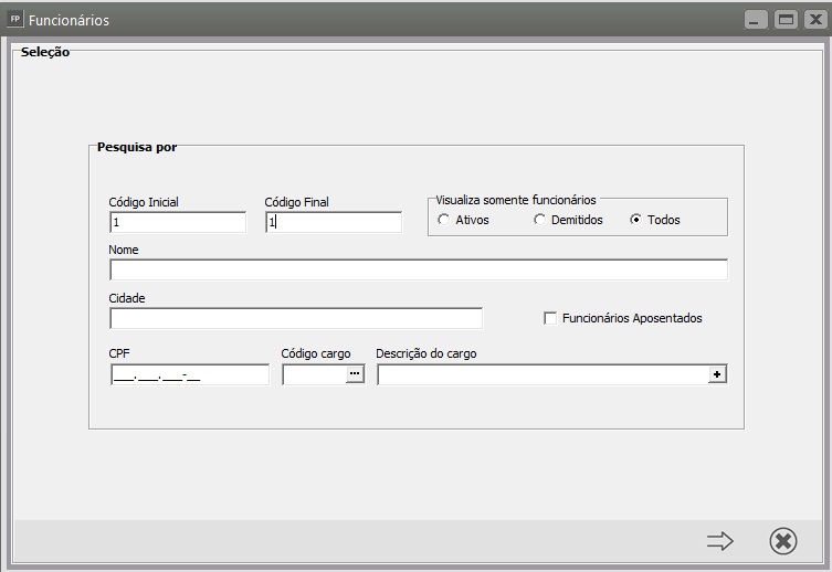 Em seguida acesse o Sistema Folha de pagamento no menu Manutenção > Funcionários > Manutenção de Funcionários > Manutenção, pesquise pelo funcionário que apresentou o erro e edite o cadastro do mesmo.