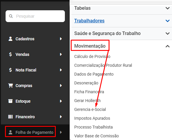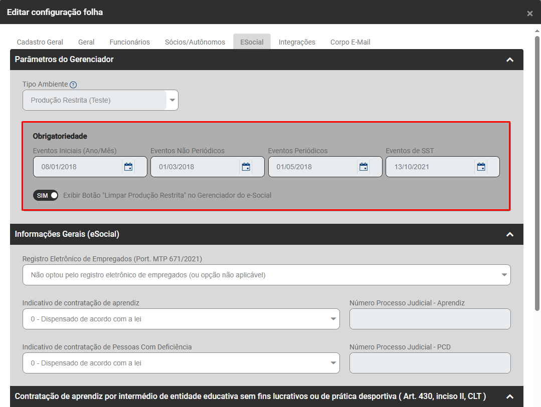 O Módulo Folha de Pagamento deverá estar com o mesmo Grupo e Datas de Obrigatoriedade informados no Portal do eSocial