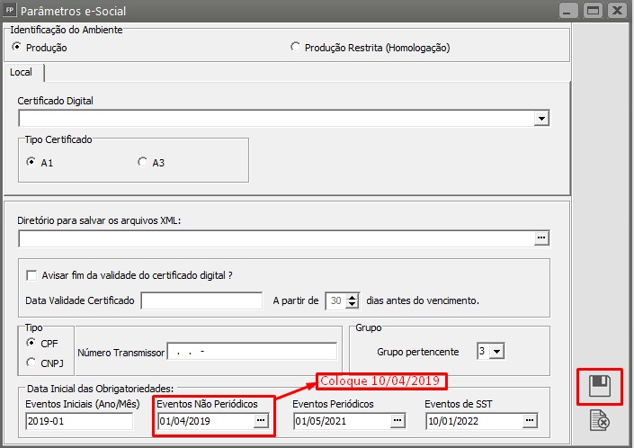 Descrição:  Os dados de ocorrência do evento 'DD/MM/AAAA' devem ser iguais ou posteriores ao início da obrigatoriedade deste evento '10/04/2019' para o trabalhador ao eSocial.  Para confirmar a data de obrigatoriedade do empregador, verifique o cronograma disponível no site https://portal.esocial.gov.br/.