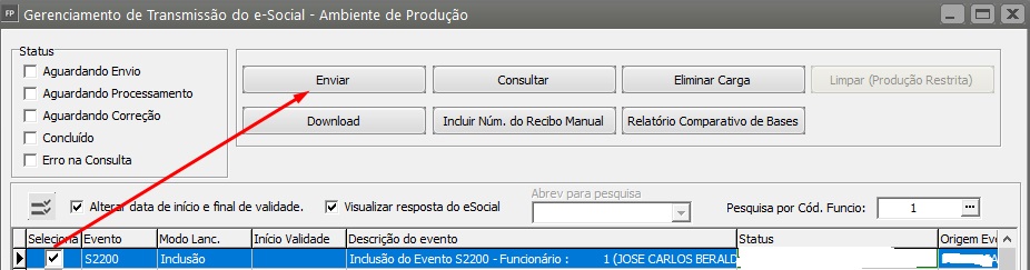 Verifique se deos acordo com a datadados de admissão do funcionário de acordo com o mesmo deveriadevem constar no Portal do eSocial,eSocial em caso afirmativo, acesse o Gerenciamento de Transmissão do eSocial e envie o evento S2200 do funcionário.