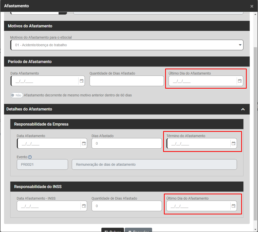 Verifique se o Afastamento e o retorno do afastamento foram enviados para o Portal do eSocial e se as cargas estão Concluídas com Sucesso.