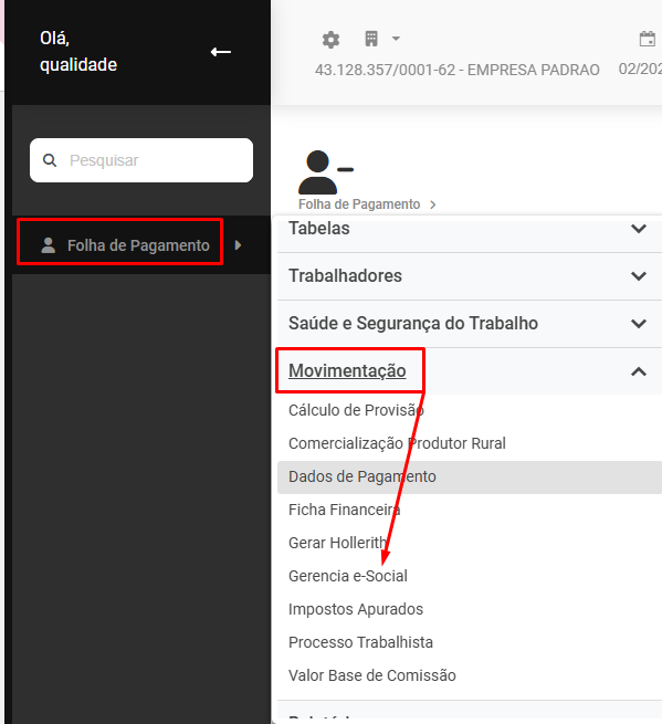 Em seguida acesse o menu Folha de Pagamento>Movimentação>Gerencia eSocial