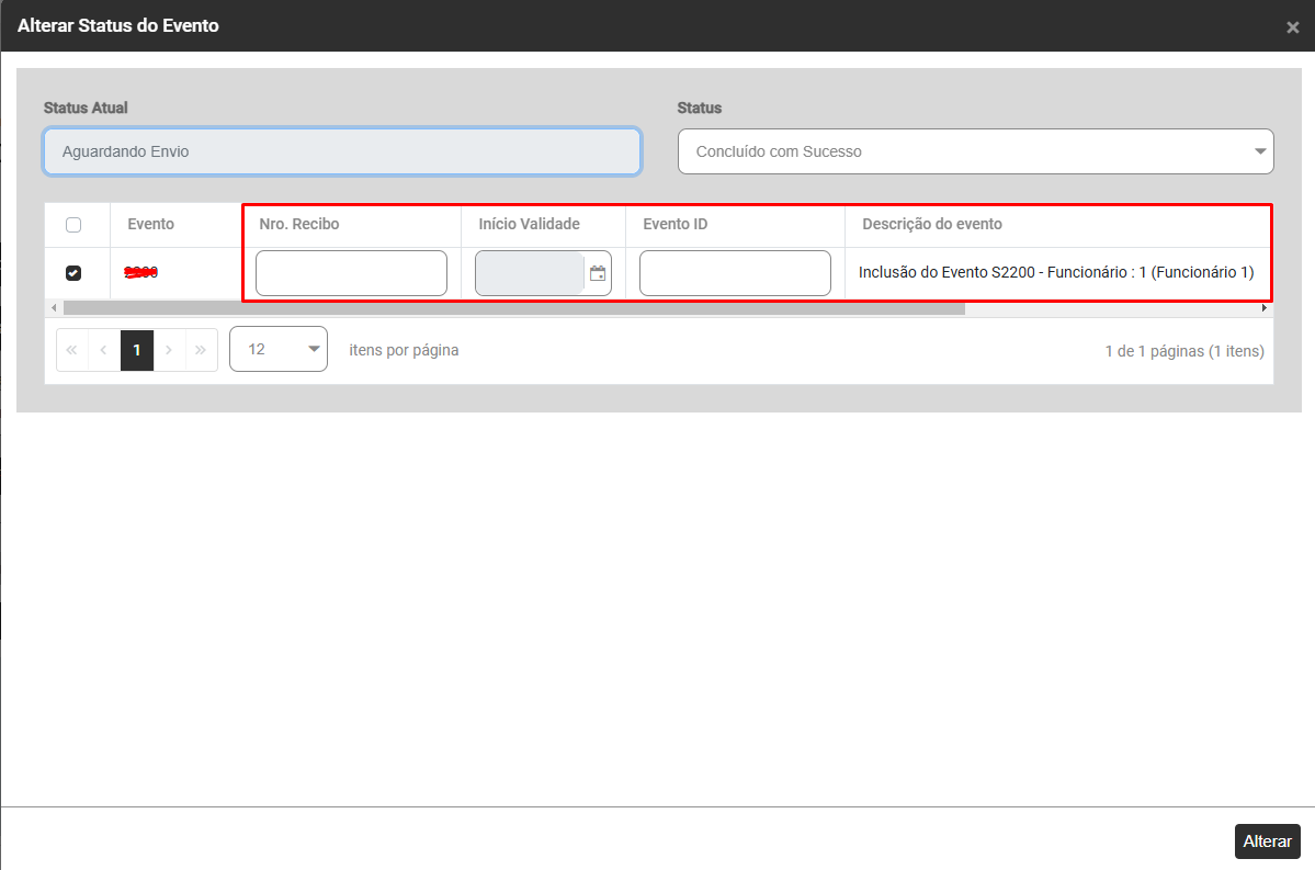 Selecione o Evento e em Seguida Clique em Alterar Status do Evento