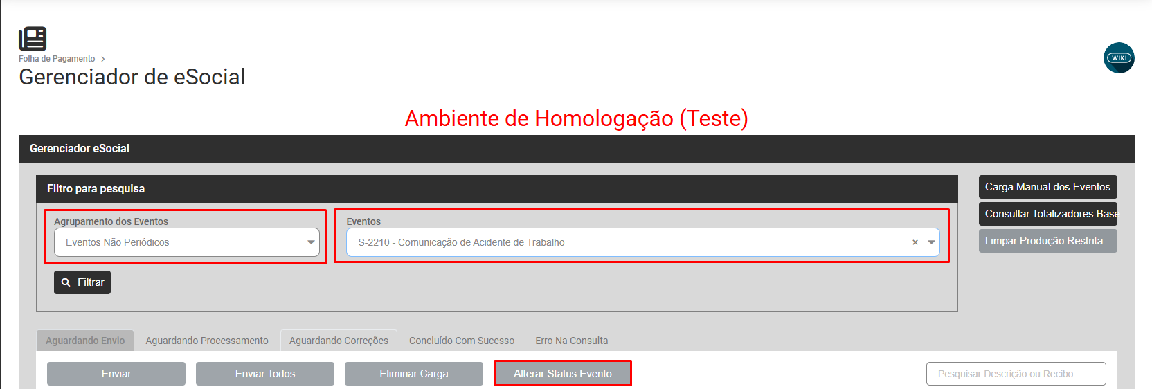 Filtre por Eventos Não Periódicos - S2210 - Aguardando Envio