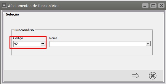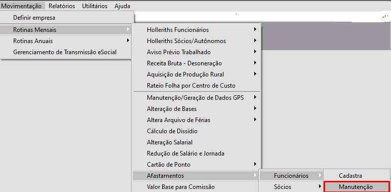 Correção: Acesse o menu Movimentação > Rotinas Mensais > Afastamentos > Manutenção e pesquise pelo código do funcionário.