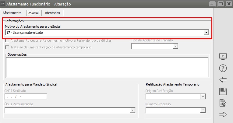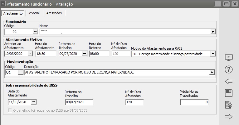 Edite o cadastro do afastamento e confira as informações