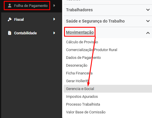 Acesse Folha de Pagamento>Movimentação>Gerencia eSocial