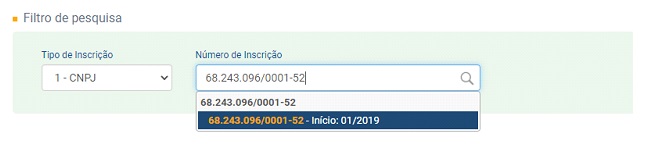Defina o tipo de inscrição e digite o numero da inscrição, quando a informação aparecer clique para que seja aberta a tela