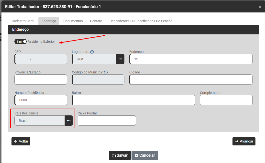 Verifique primeiramente se o funcionário é Estrangeiro.