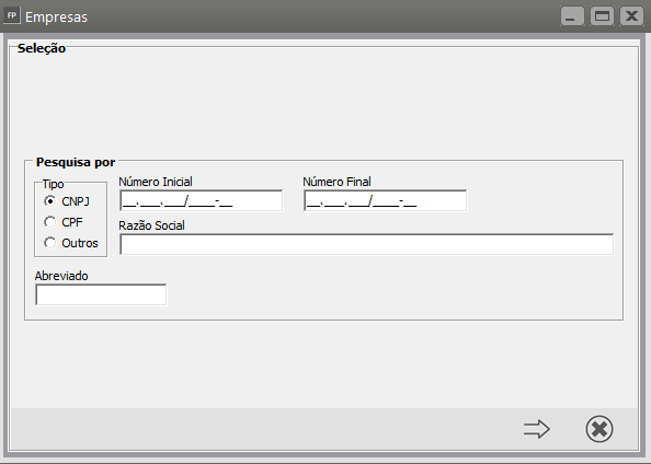 Correção Acesse o menu Empresas > Manutenção > Avançar, dados pela ABREV da empresa e clique na seta.