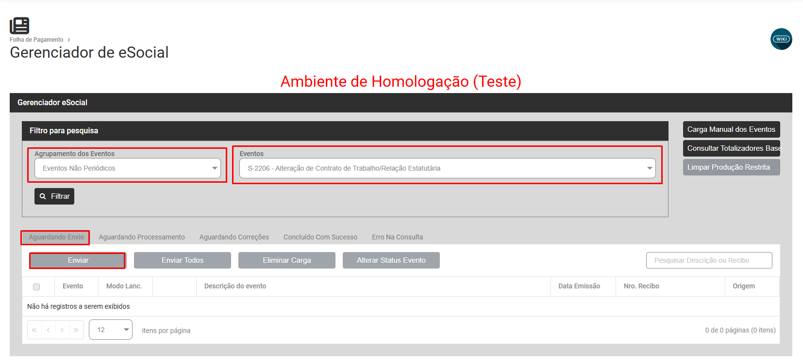 Filtre por Eventos Não Periódico - S2206 - Aguardando Correção e reenviefaça novamente o evento S2210 (Comunicação de Acidente de Trabalhoenvio para o eSocial)Portal do eSocial