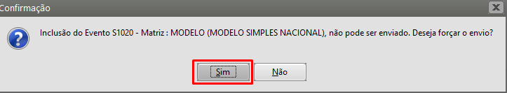 Caso o S1020 foi enviado, porém a data de validade foi enviada com data posterior a movimentação do S1200, basta selecionar ela e clicar para forçar o envio.
