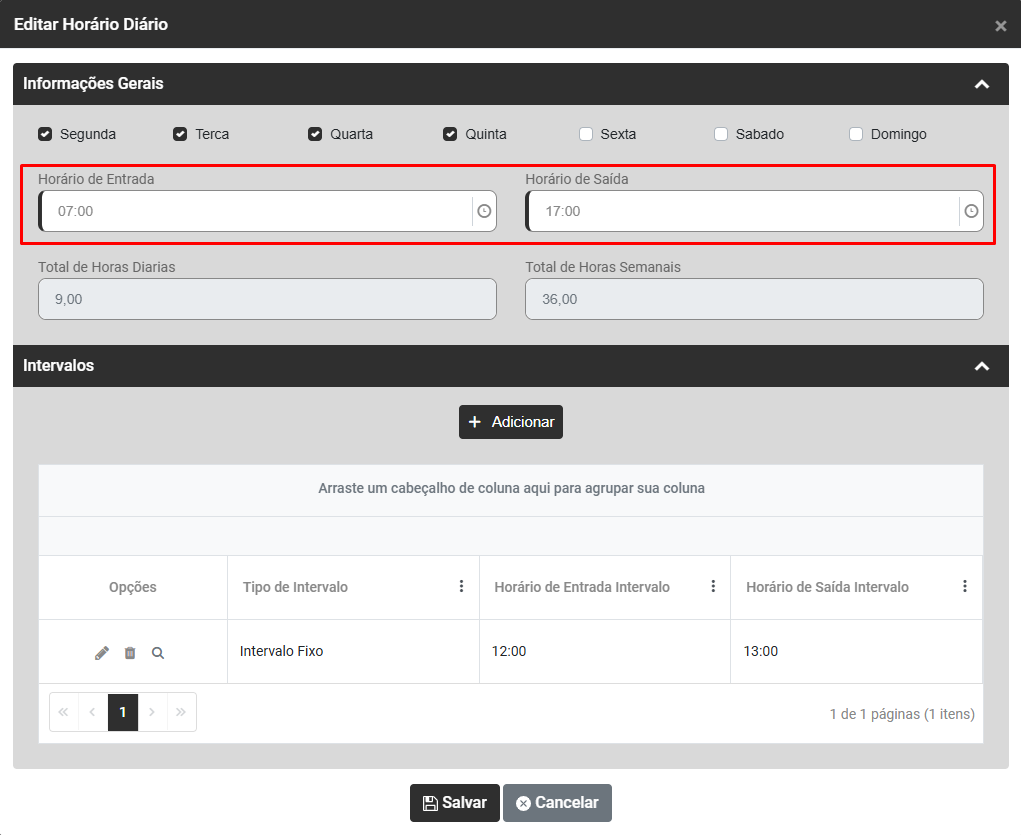 b) Se já existir uma Lotação cadastrada faça a edição do cadastro e em seguida a conferência das informações definidas para aquela Lotação