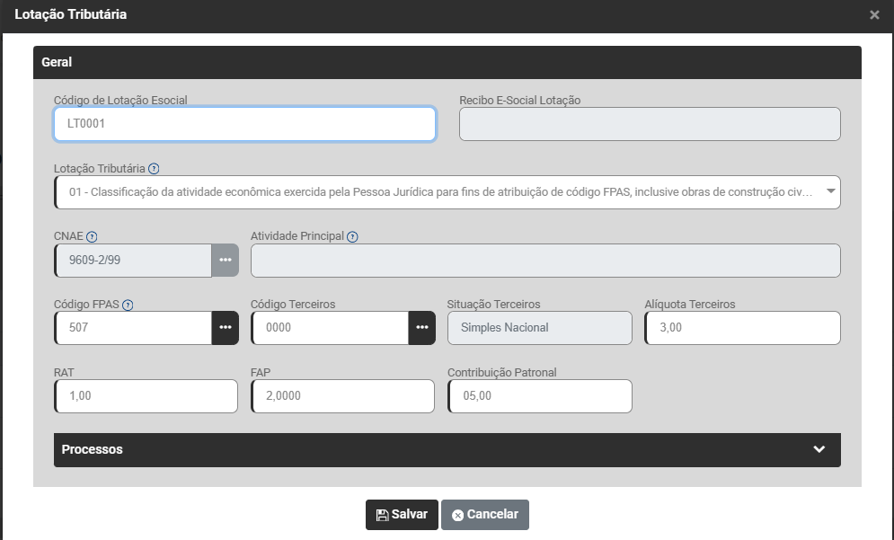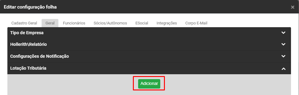 Edite a Configuração da Empresa que apresentou a inconsistência na aba Geral>Lotações