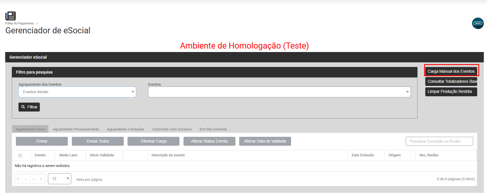Caso não encontre uma carga para ser enviada ao eSocial, Gere uma Carga Manual para o Evento