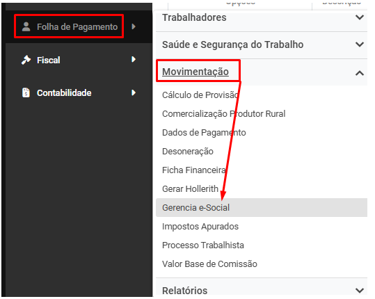 Correção: Acesse o menu Folha de Pagamento>Movimentação>Gerencia eSocial