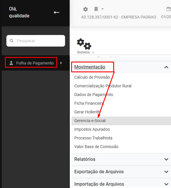 Como corrigir Acesse o menu Folha de Pagamento>Movimentação>Gerencia eSocial