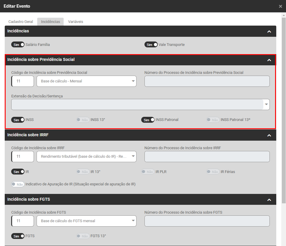 Em seguida, edite o evento e acesse a aba Incidências