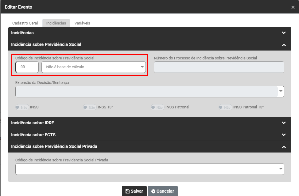 a) Código de Incidência tributária de Contribuição Previdenciária diferente de 00