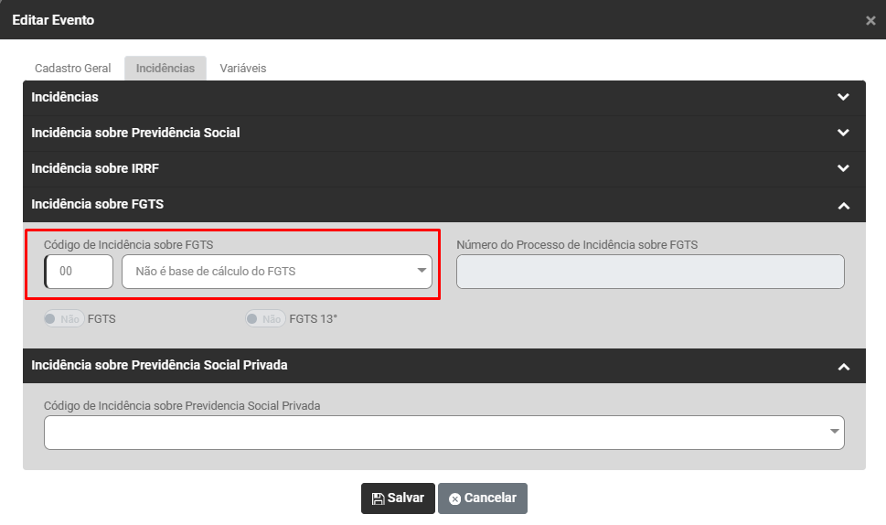 Ação Sugerida: Se for relativa ao estagiário, não podem ser aceitas rubricas cujo Código de Incidência tributária de Contribuição Previdenciária ou Código de Incidência tributária de FGTS seja diferente de [00].