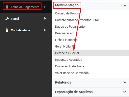 1 - Correção: Acesse o Menu Folha de Pagamento>Movimentação>Gerencia eSocial
