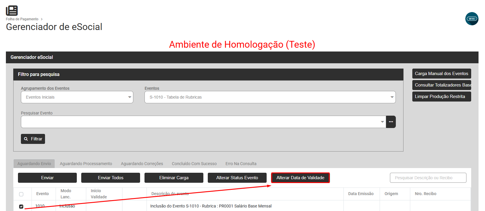 Após definir corretamente a data de validade do evento faça o envio para o Portal do eSocial