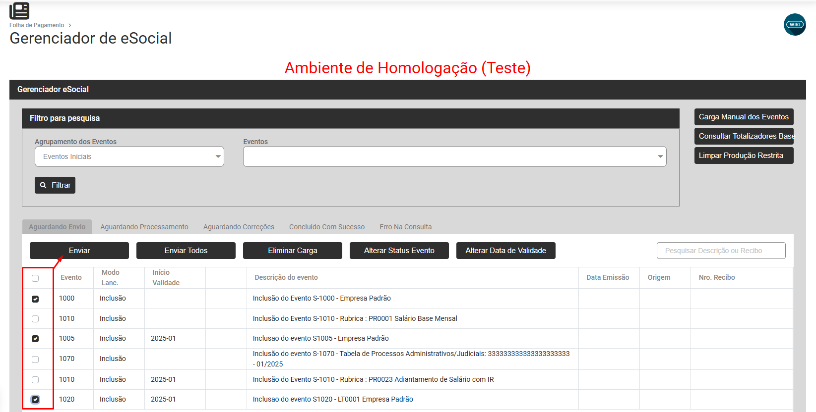 Com os eventos iniciais em ordem, envie novamente a carga s1200.