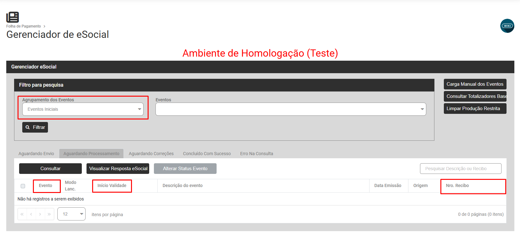 - Se estiver com aguardando processamento faça a consulta da carga, selecione o evento e clique no campo 'Consultar'.