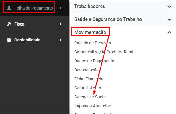 Agora, acesse Folha de Pagamento>Movimentação>Gerencia eSocial