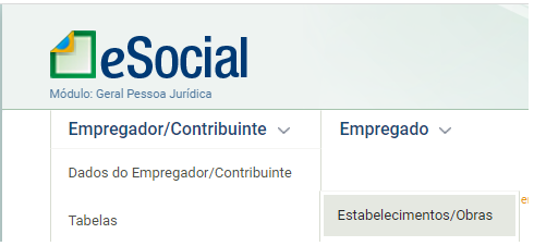 Correção: Acesse o Portal do eSocial no Menu Empregador/Contribuinte>Estabelecimento/Obras