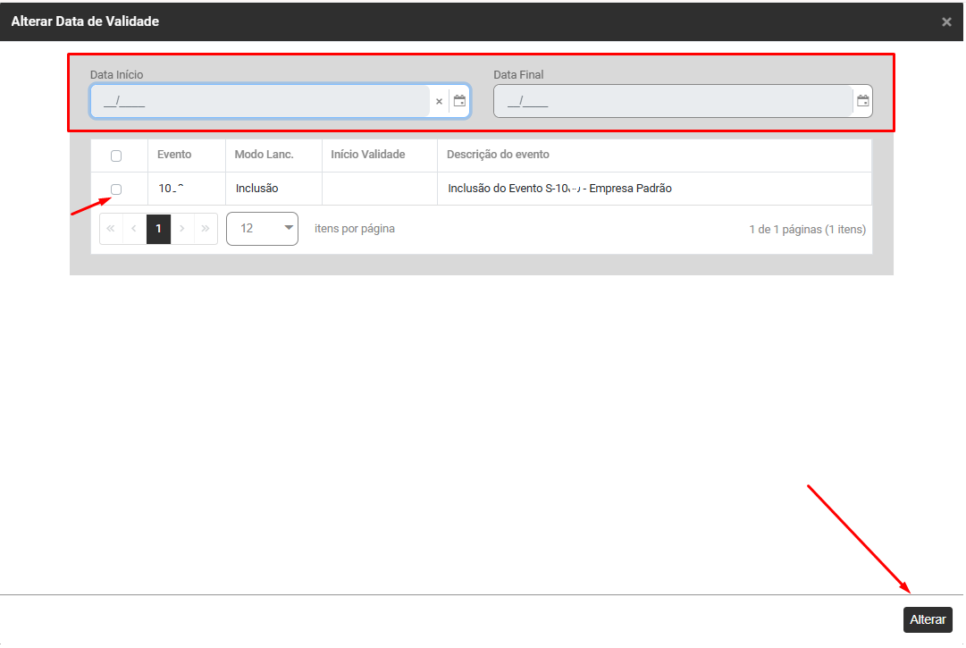 Descrição: A data de fim de validade deverá ser maior ou igual a data de início de validade