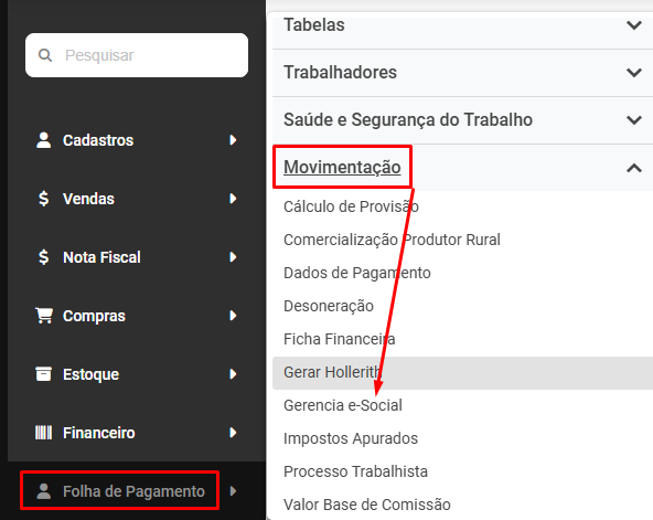 Agora, acesse novamente Folha de Pagamento>Movimentação>Gerencia eSocial