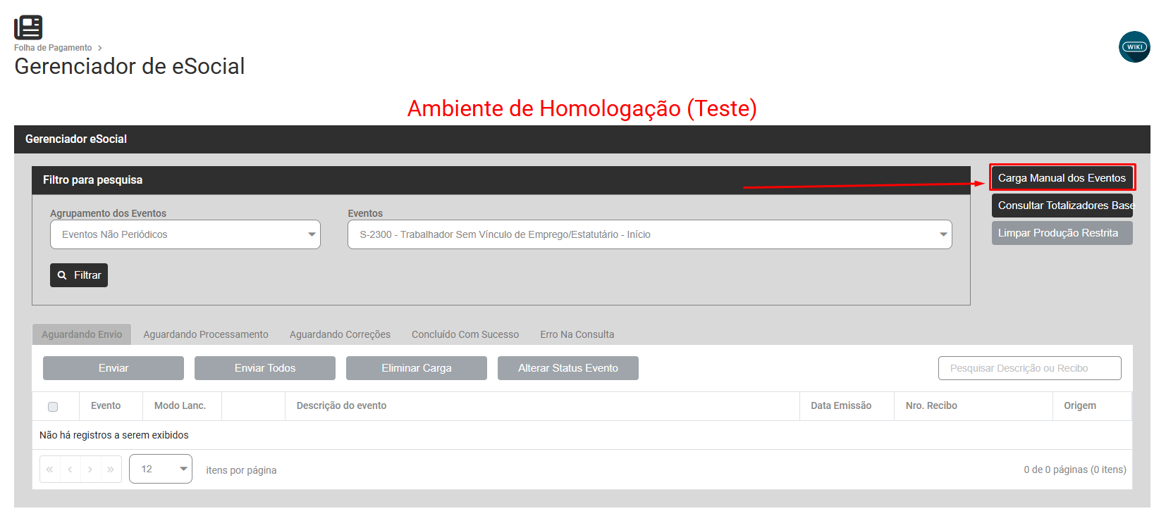 Se não houver nenhuma carga para ser enviada, Verifique se a carga existe e se deverá ser enviada, em caso afirmativo clique no botão Carga Manual dos Eventos