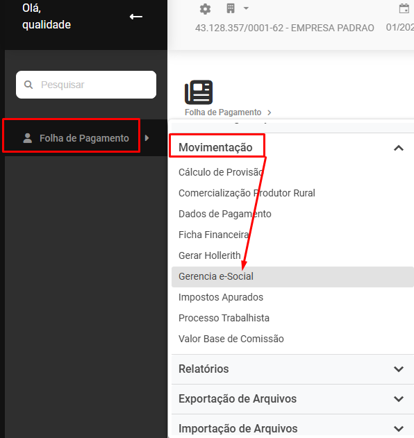 Correção: Acesse o menu Folha de Pagamento>Movimentação>Gerencia eSocial