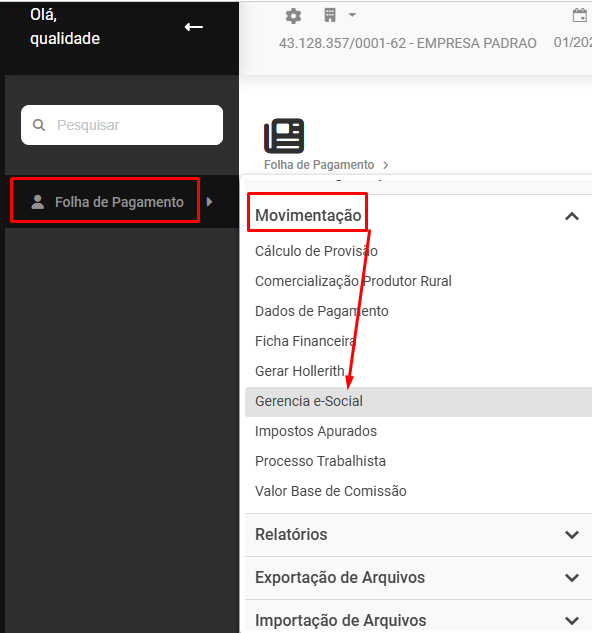 Ao corrigir as informações do Trabalhador, acesse novamente o menu Folha de Pagamento>Movimentação>Gerencia eSocial