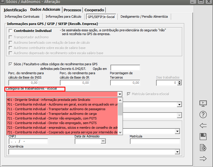 Edite o Cadastro do Trabalhador e verifique qual a Categoria informada para eSocial