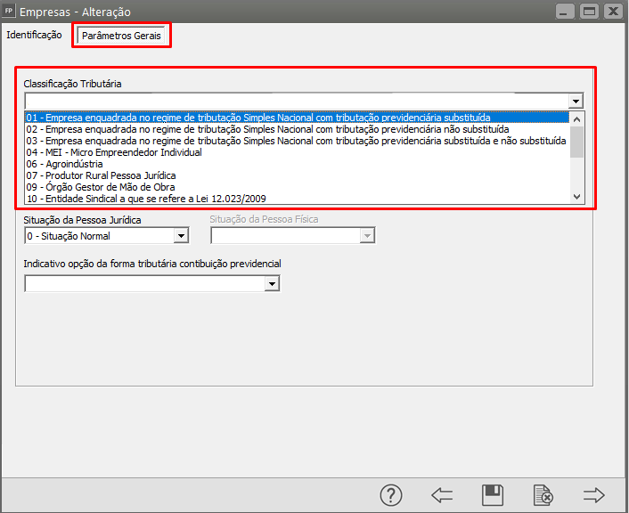 - Verifique se a classificação tributária da empresa está correta: