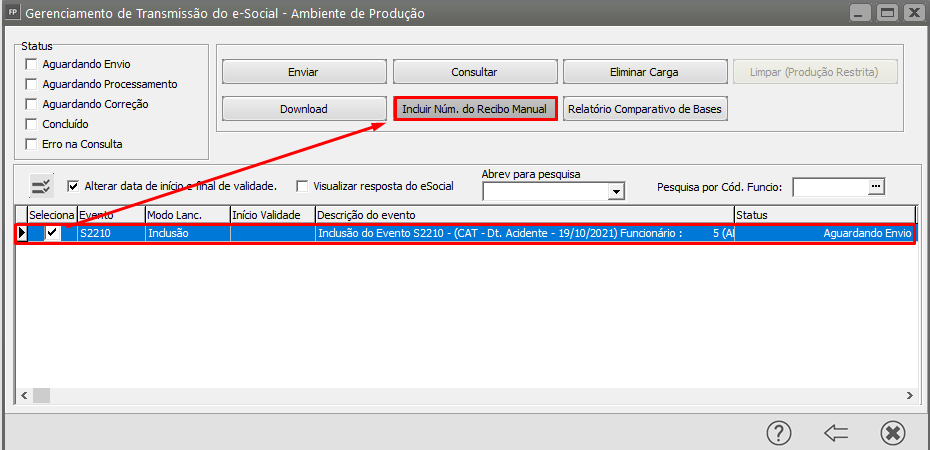 Descrição: “Não foi localizado um Evento de CAT com o número de recibo de entrega informado”.