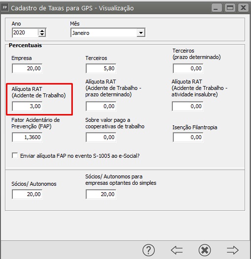 se a alíquota RAT (Acidente de Trabalho) está correta.