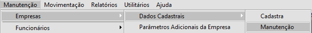 Correção: Acesse o menu Manutenção > Empresas  > Dados Cadastrais > Manutenção