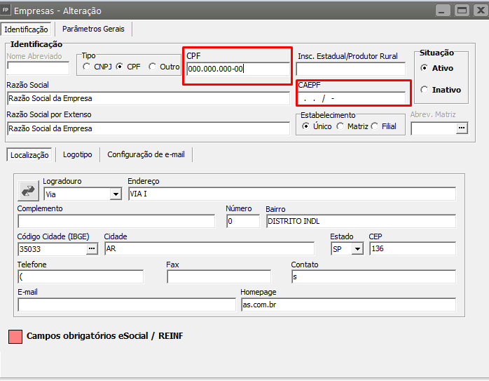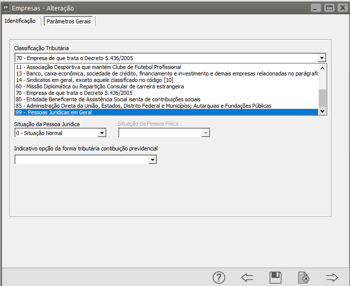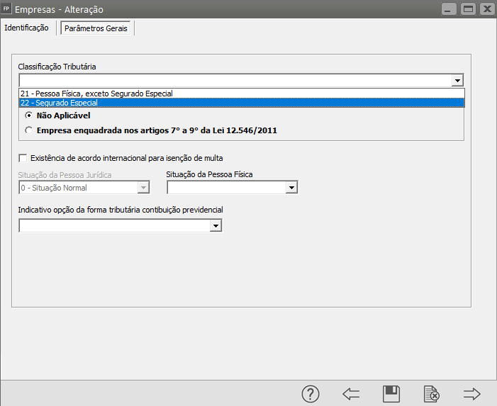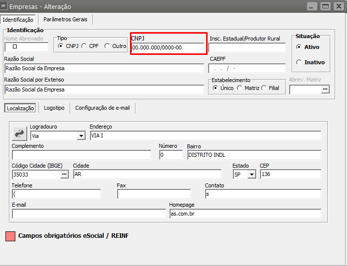 Correção: Acesse o menu Manutenção > Empresas > Dados Cadastrais > Manutençãoo, pesquise pela empresa e em seguida clique na seta Avança, acesse a aba Parâmetros Gerais e verifique: