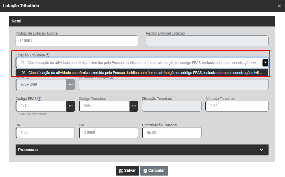 Ação Sugerida: Tipo de Lotação deverá ser compatível com a classificação tributária do empregador cadastrada para o período da lotação.