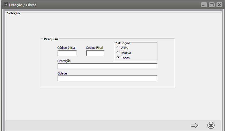 Correção: Acesse o menu Manutenção > Obras > Manutenção, pesquise pela obra e clique no botão Avançar