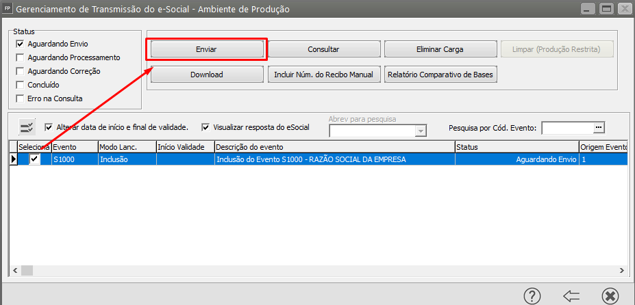 Verifique o Status do evento S1000