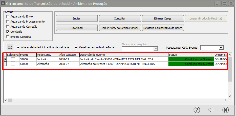 b) se estiver concluído com sucesso, verifique se foi informada data Inalfinal de validade no portal do eSocial, pode ser que o evento já tenha passado de sua validade e desta forma não será possível enviar outros eventos para o empregador, neste caso envie uma retificação do evento S1000 sem informar o final da validade.